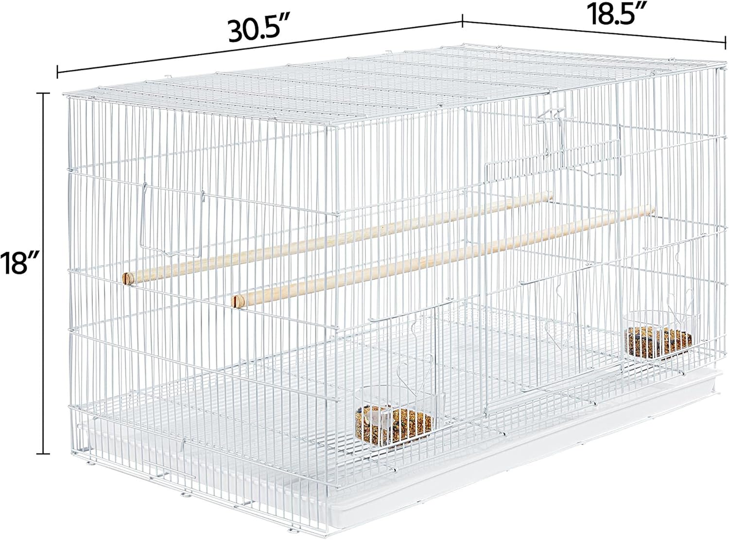 - Spacious Flight Cage: This generously-sized birdcage measures 30.5" L x 18.5" W x 18" H, which allows 3-4 small/medium pet birds to stretch wings and hop around cheerfully at the same time. Besides that, the roomy cage also has ample space for nests, perches, and swings