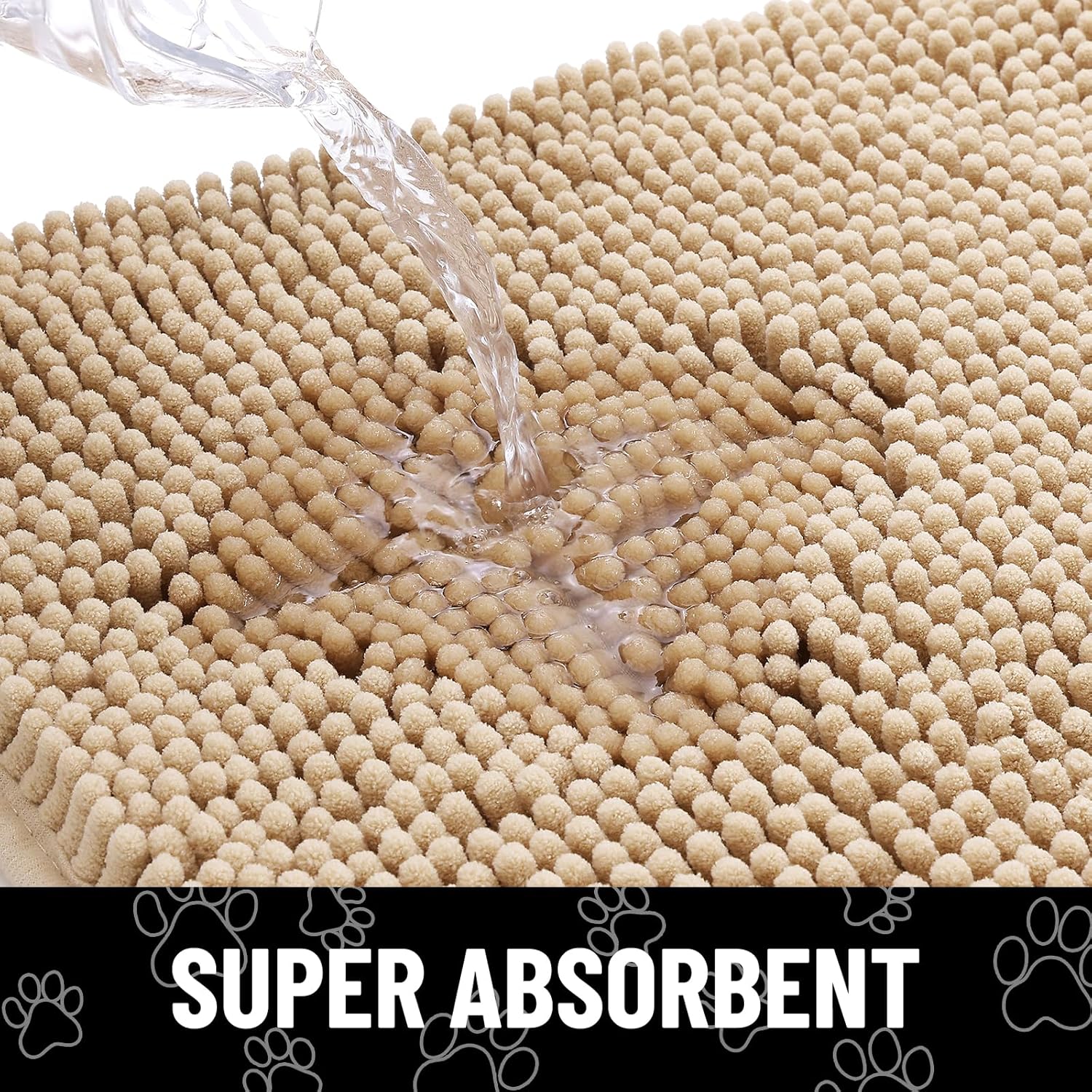 Smiry Dog Door Mat for Muddy Paws, Absorbent Dirt Trapper Non Slip Quick Dry Washable Chenille Mat for Mud Dogs, Entry Rug for Indoor and Outdoor (59x35 Inches, Beige)