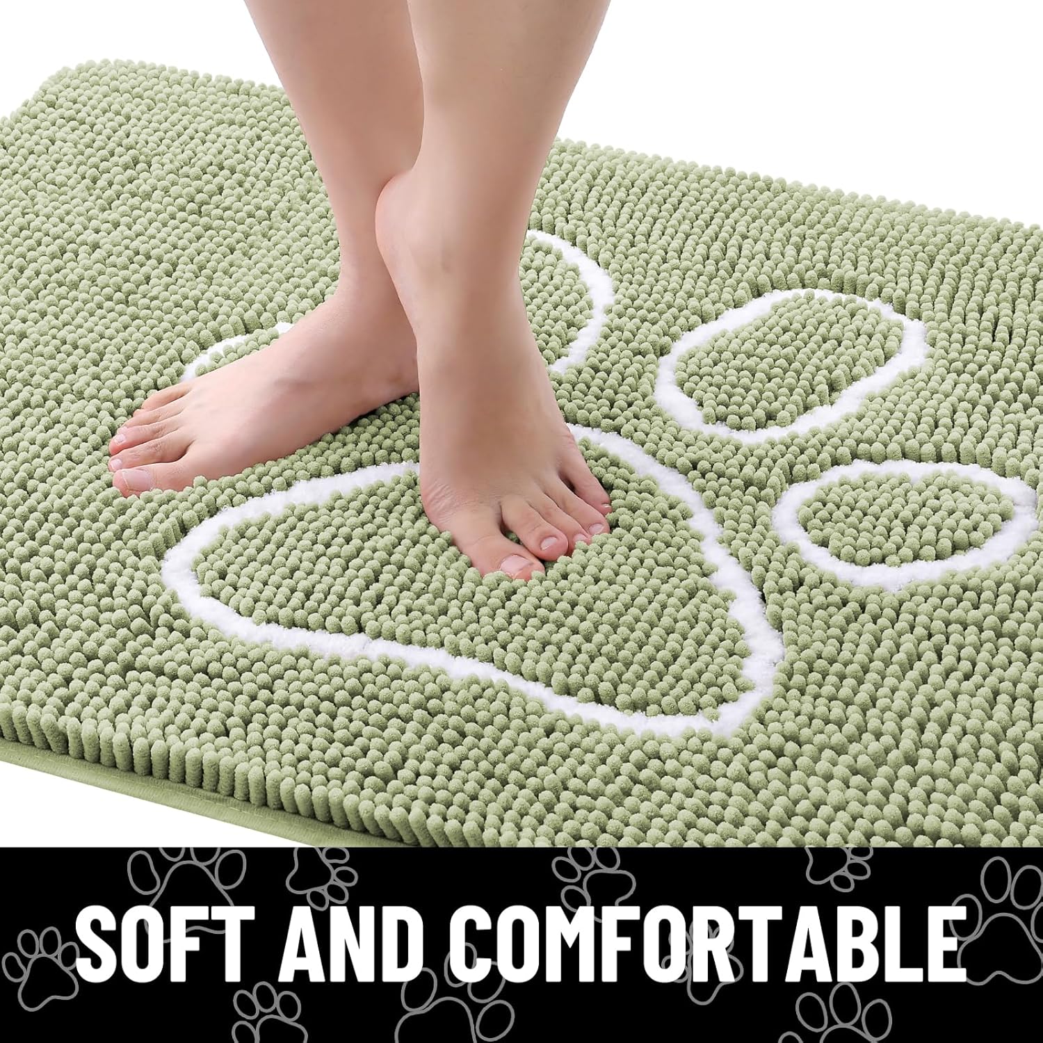 Smiry Dog Door Mat for Muddy Paws, Absorbent Dirt Trapper Non Slip Quick Dry Washable Chenille Mat for Mud Dogs, Entry Rug for Indoor and Outdoor (59x24 Inches, Sage Green)