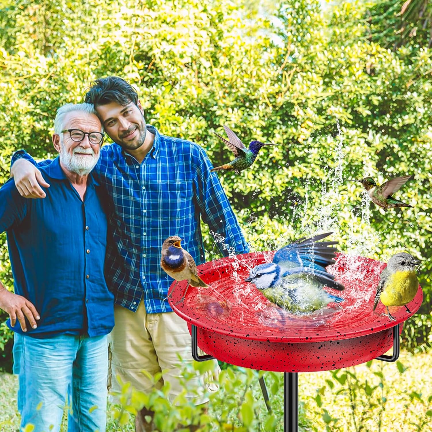 40In Metal Bird Bath for Outside, Freestanding Garden Birdbaths Bowl Bird Feeder, Detachable Decoration Spa Birdfeeder for Outdoor Garden Patio Yard Lawn (Red)