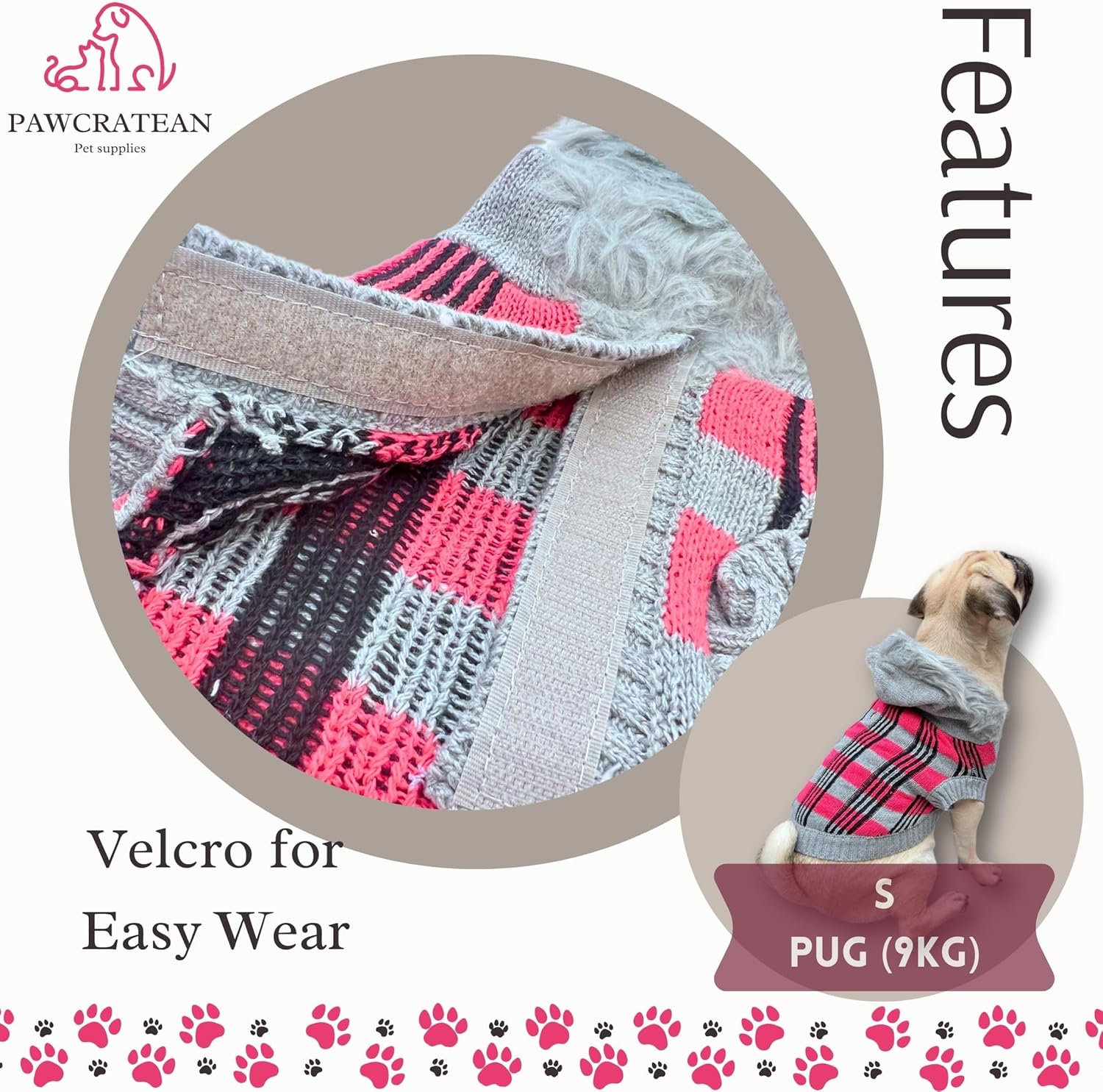 Cute Sweater for Dogs and Cats Soft Flannel Pet Outfit Warm and Cozy Animal Hoodie Small to Large Pet Clothes for Halloween Parties and Everyday Wear (Small, Pink Checkered with Hat)