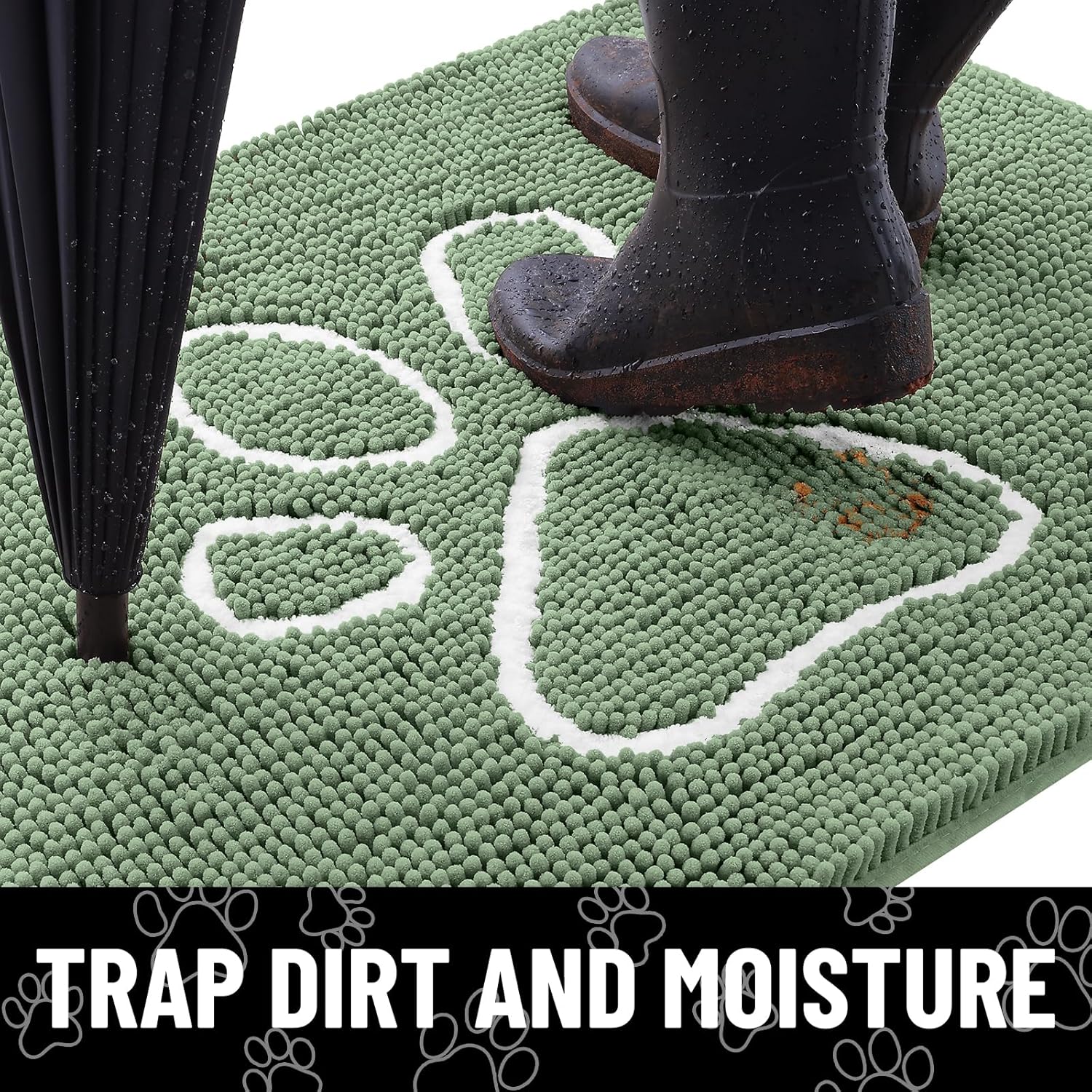 Smiry Dog Door Mat for Muddy Paws, Absorbent Dirt Trapper Non Slip Quick Dry Washable Chenille Mat for Mud Dogs, Entry Rug for Indoor and Outdoor (36x24 Inches, Olive Green and White)