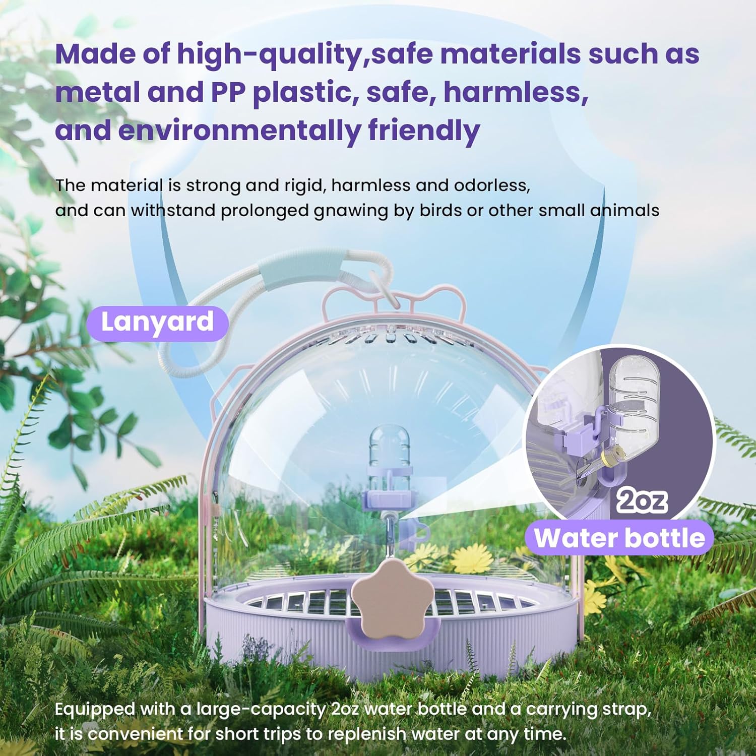 - 【Multiple Accessories For Different Scenes】Our small animal cage is equipped with a 60ml water bottle, to meet the short distance travel water supplement, so that your pet travel stress-free, for small animals to bring a first-class comfortable experience.